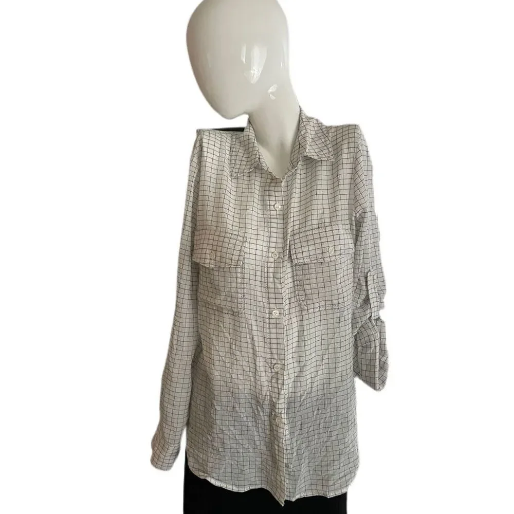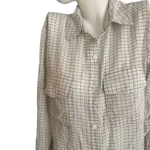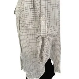 Super soft and comfy. Oversized 100% cotton button-down shirt. White and black. Double breast pockets with button flap. Sleeves can be worn down or buttoned up. (See pics) Slight high/low style.