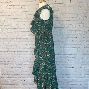 Gorgeous emerald green background with black, yellow and white floral pattern