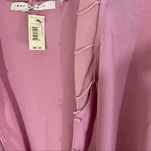 Pink button up cardigan with elastic hemline and cuffs. Attached detail on the collard.