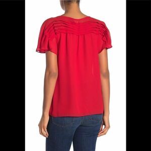 This lightweight blouse with a pleated yoke pairs with flutter sleeves for a feminine look.