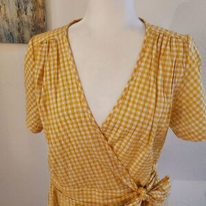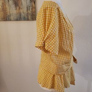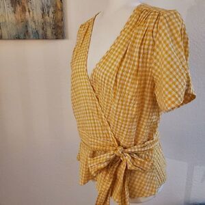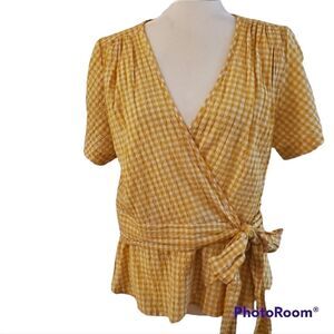 Max Studio Yellow Checker wrap blouse L