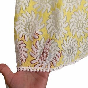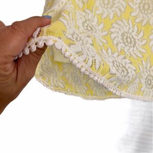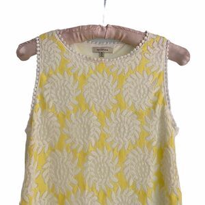 Pretty floral lace style design with eyelet trim. Fresh vibrant lemon yellow. Lined. Pullover. Great preowned condition- no flaws- like new.