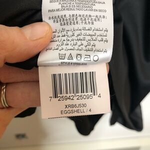 Eggshell White top with beautiful detail on the front, black silky bottom, by Max and Cleo, zip up the back. Size 4