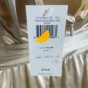 Maxazria Collection HOCO Silk Tufted Waist Bubble Hem Strapless Large Bow Dress