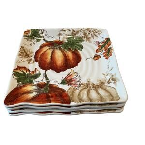 Maxcera PUMPKIN PATCH Dinner Plates 11in Square Set of 4 Thanksgiving New