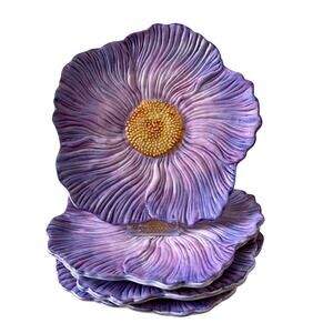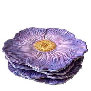 Maxcera Purple Floral Ceramic Dinner Plates 10in Set of 4 Spring New