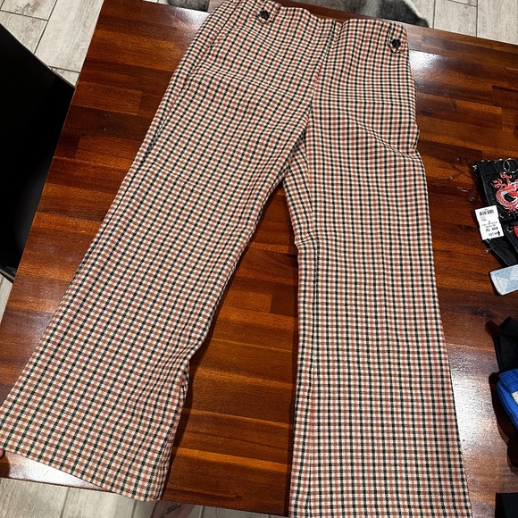 Blue and red checkered pants with mid calf flare. Never worn US size 6