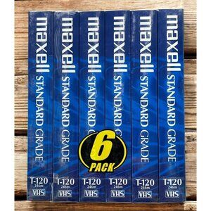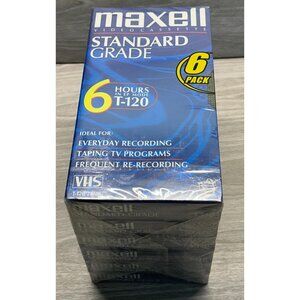Maxell 6 Pack 6 Hour T-120 Standard Blank VHS Videocassette NIB New Sealed