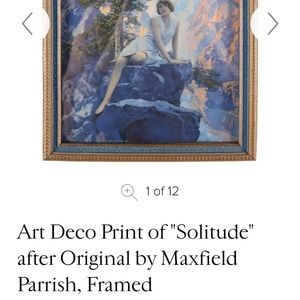 Maxfield Parrish, "Solitude" 1931, Art Deco Vintage Print, professionally framed (I've never removed it from the frame, & kept it out of sunlight.) Dimensions: 8 1/2"x 14" (Framed)