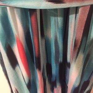 Shades of blue and red/pink maxi. Size medium will fit someone size 3-6 height 5'4 or taller. Worn once and got so many compliments! Beautiful for a nice or causal dinner