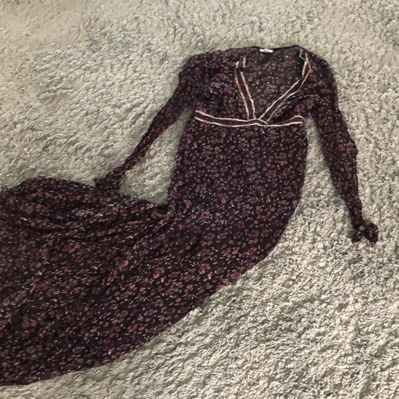 Maxi dress with flower detail and cutout detail on sleeves