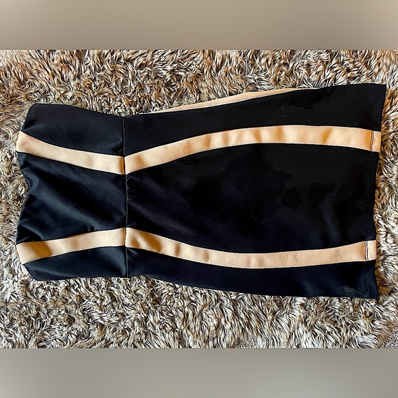 Curve appeal design. Black and tan. Worn once. Small pleat backside.