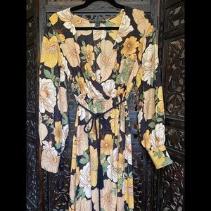 Only worn once. Beautiful maxi dress from forever 21 with a cute tassel belt. Features slits in the front for both legs.