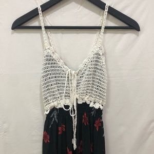 This is a break new tagged romper from American Eagle. It is flowy so it can be pulled off as a dress mixed with a romper style. It also has a tie on the back so you can adjust the tightness!