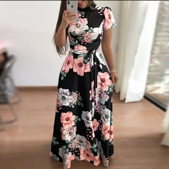 Black Floral Maxi Dress, material on this dress doesn't stretch much