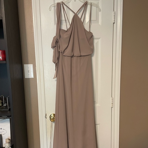 One once for a sorority event. Perfect condition, s chiffon material and great for a wedding or party!