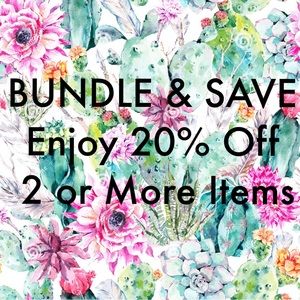 Bundle 2 or more items and automatically SAVE 20%. Add 2 or more items to your bundle and then click “buy now” to automatically save 20% on your purchase🎉.