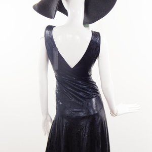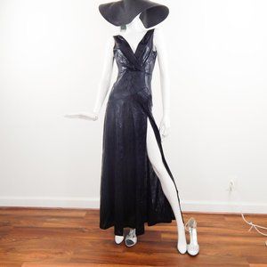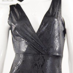 Maxi Dress Black ANIMAL SNAKE PRINT FOIL Sleeveless Slit V Neckline