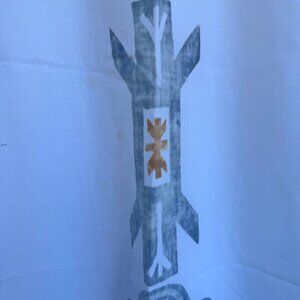 Maxi Dress Cultural Ethnic Native Print 3/4 Sleeves White Gray Back Zip Vtg 60s