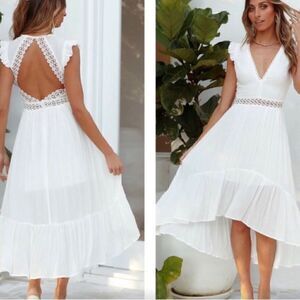 Maxi Dress Ruffle Crochet Open Back by Shein Size XS