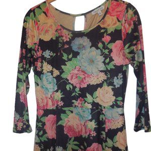 Maxi Dress SMALL NEW Floral 3/4 sleeve black pink bohemian