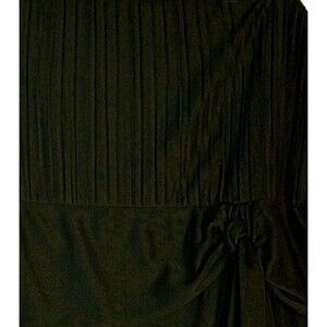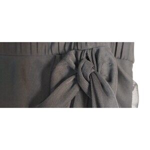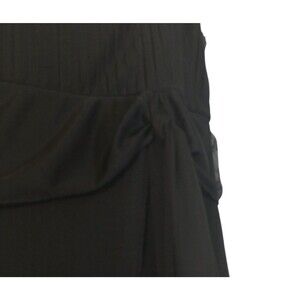 Black Chiffon Stretch Lined Straps Pleated Bodice Slip On Size M Maxi Dress with Bow trim at waistline