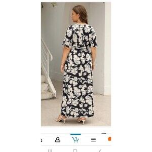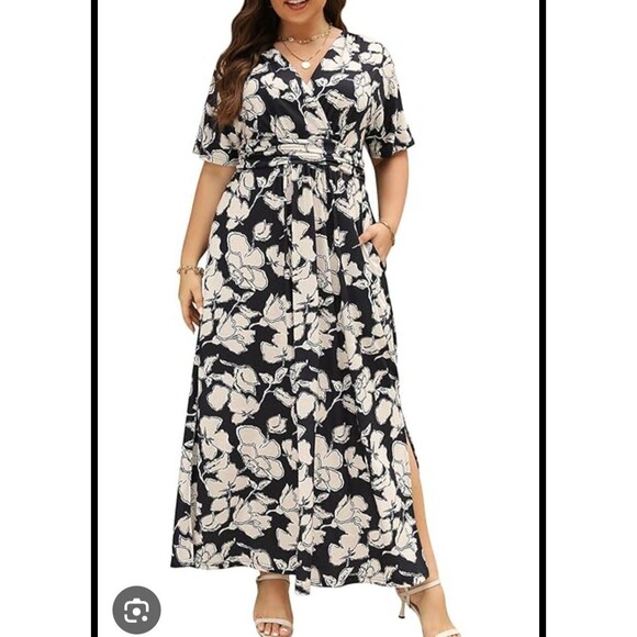 Keluummi Plus Size Wedding Guest Maxi Dress for Curvy Women, Summer Formal Floral V Neck 3/4 Sleeve A Line Long Party Dress