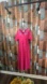 Chic fuchsia maxi dress with vibrant blue floral embroidery. Features a flattering waist tie.