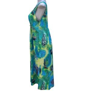 Maxi Dress Women's Medium Blue Green Abstract Mix Print Surplice Neck Sleeveless