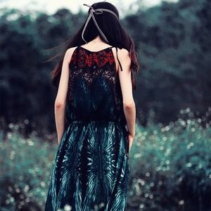 Aporia.As Light Dress Halter Drawstring . Gorgeous. lined. top notch fabric and construction. Asian one size = best for US 2-6