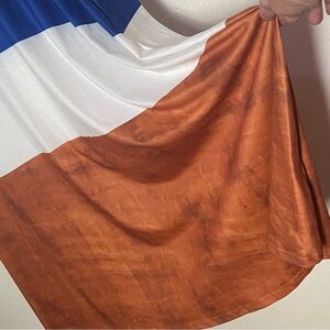 Maxi Dress Boho Beach Lounger Size Lg Stretch Colorblock V-neck Short Sleeve Blue White & Burnt Orange. Chic & stylish, yet comfortable, the soft 95% Polyester & 5% Spandex gives plenty of room for stretch and is enhanced by its flowing design. No Brand Tag
