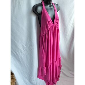 Maxi Magenta Hot Pink Halter Neck Dress Size M Barbiecore Feminine Open Back