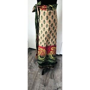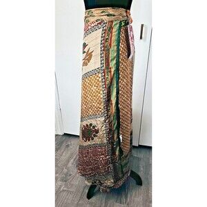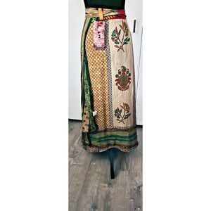 Maxi Reversible Sari Silk Wrap Skirt OSFM Multi layer Hippie Boho Festival Art