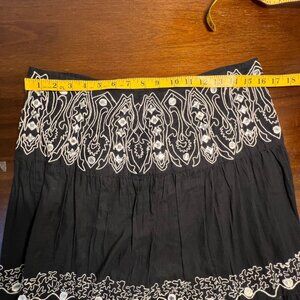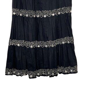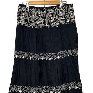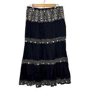 Maxi Skirt Embroidered Gypsy Boho Artsy Black Nature Flowy Coastal Lagom Size 8