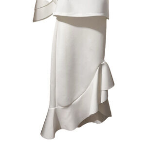 249320 NWOT Maxi Skirt Set Scuba High Neck Ruffles Glam White Witch Cos Play Fairy Celebrity Theater Show Stopper Wedding SZ L