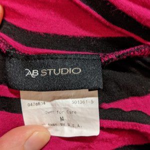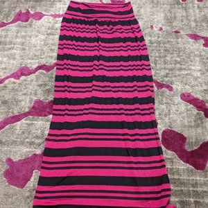 Maxi Skirt with Single Slit. Pink and black horizontal stripes. Size M. 13" waist, 39" length.