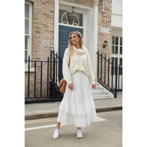 Maxi Skirts High Waist Drawstring with Pockets White