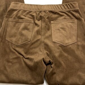 Stylish and comfortable ultra suede brown pants, perfect for any occasion. The fabric is so soft it feels just like suede but a legging. Elastic waist allows for stretch.