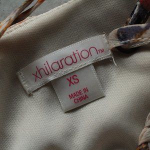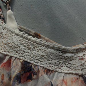 This dress is perfect for the spring-time. It has a floral pattern and geometric overlay. The patterned fabric is sheer, however, there is a thick underlayer that makes the dress completely opaque. There is a cross detail on the back and the straps are adjustable.