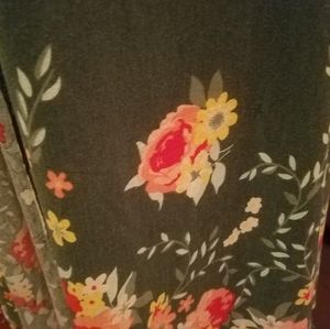 Worn over dresses or outfits, green in color with floral print along the bottom border