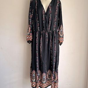 Maxi dress 3X boho black with paisley print NWT
