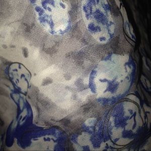 Long flowing grey and blue maxi dress perfect for a sunny day at a wedding or nice gathering