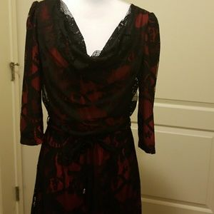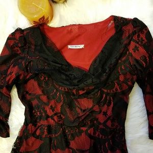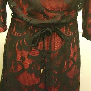 Lace maxi black lace .drop collar and red connected insert .size 8-10 nice and elegant .gently used