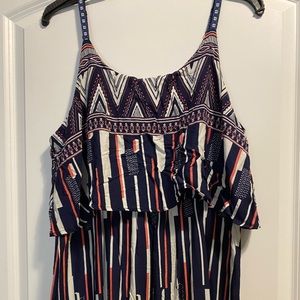 Not even sure how to explain this dress. Maxi dress with a layer of flowy fabric over the chest. Straps are adjustable. Never worn