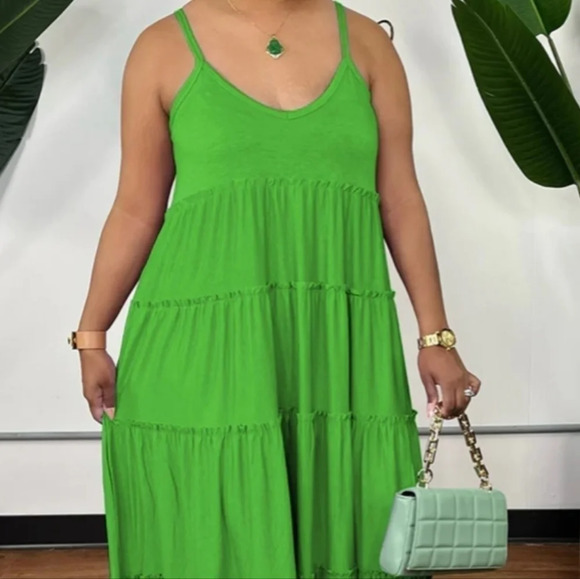 Brand new size small maxi dress. Polyester and spandex materials. Adjustable straps. Small 16 in pit to pit. 57 in long.