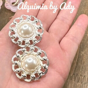 Maxi freshwater pearls big oversized maximalist dangle earrings silver statement