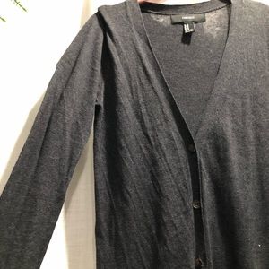 Maxi long dark gray button down cardigan size medium only worn once or twice. Im 5 ft this came down to my mid shin area. It looks transparent in the pictures but its not really like that when you wear it