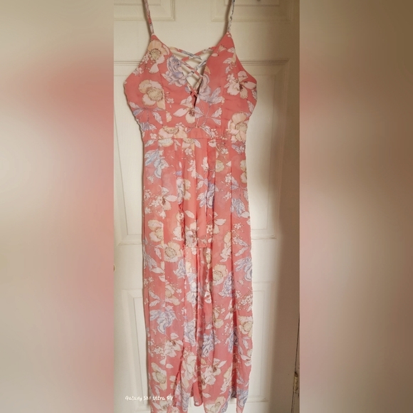 NWT From a distance this looks like a dress BUT it's actual shorts with a skirt. Adjustable spaghetti straps, criss cross bust line detail, and a back zipper. The main color is more of a peach or salmon color