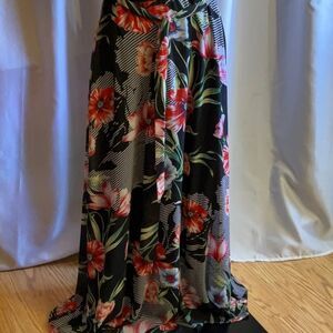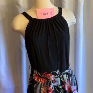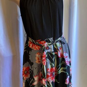 Maxi dress with halter style top, boldly flower skirt matching belt size 10