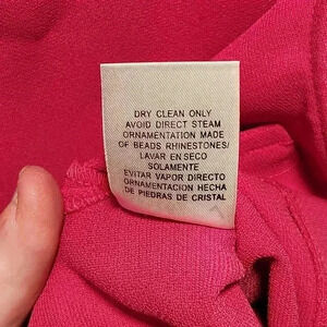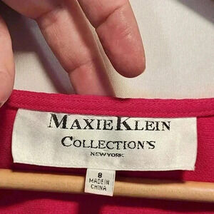 Women's Size 8, Maxie Klein Collection tank top blouse. This blouse is hot pink and features a single beaded neckline, it also has slits on both sides of the top. It is 100% polyester, made in China, and dry clean only.